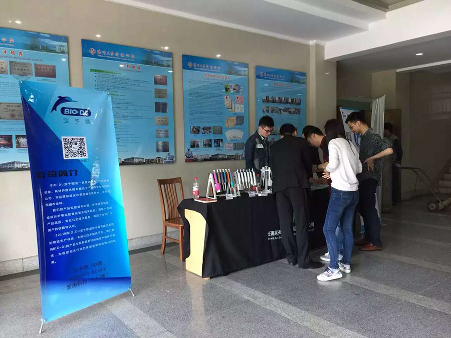 2016年5月9日-5月12日,寶予德(中國)春季高校儀器巡回展第五站在江蘇三所著(zhù)名高校如期舉行,BIO-DL寶予德和當地代理商合作展出了移液系列產(chǎn)品和分子生物學(xué)相關(guān)實(shí)驗儀器。優(yōu)良的產(chǎn)品,貼心的服務(wù),精美的禮品,吸引了許多科研工作者前來(lái)問(wèn)詢(xún)。 在巡展中,BIO-DL寶予德維修工程師現場(chǎng)為用戶(hù)進(jìn)行移液器校準及維護,技術(shù)專(zhuān)員與老師、同學(xué)們熱情互動(dòng),答疑解難,加強了用戶(hù)對移液器規范操作和日常維護的了解。 下面是活動(dòng)回顧: